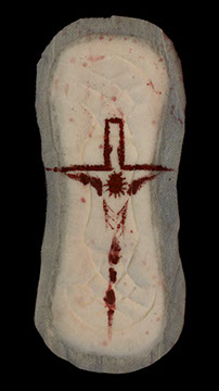 I have had numerous group and solo exhibitions of my paintings, drawings, sculptures, and art-constructions nationwide in leading and cutting-edge galleries, as well as several select museums. I strive to provoke and provide opportunities to see society anew by challenging entrenched social mores. Most recently, I have created work that is even more controversial, because I’m tackling the confines and atrocities of organized religion. I have used various other body fluids in my work before, so the inclusion of menstrual blood in my art is a natural progression. As a man who can’t possibly know the experience of menstruation and as an artist working to reveal the damage done by religion, I need only point to the Book of Leviticus, which is the Old Testament’s “rule book,” filled with many references to menstruating women as unclean and saying that any man who touches them or even sits where they’ve sat becomes unclean. There has also been extensive theological discussion about the Virgin Mary, concluding she never menstruated prior to birthing Jesus – without a trace of blood or afterbirth, because both would have tainted her and Him with unholy uncleanliness and sin! If “menstrual art” can help heal the personal shame and confusion women feel about their bodies, I am honored to be part of this exhibit.