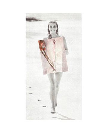 I work intuitively, often alluding to moments of personal discomfort and alienation, proposing them to be in fact universal. While generally a simple pairing of two images, my collages combine to form complex relationships. These pieces are often assembled to share an unbroken seam that connects two otherwise disjointed images, creating waning moments where they appear as one. There is a tension between the images where they work together, yet constantly reject one another. It is my hope that this guides a cyclical involvement for the viewer. My recent pieces challenge our complacency with bodily objectification.