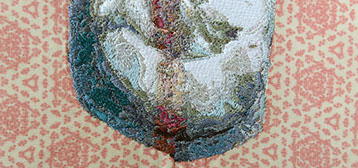 These stitches are working to say something that feels far from the traditional, polite embroidery of the past. Embroidery techniques have been used to “prettify” textiles, yet the less attractive topic of menstrual cycles conflicts with one’s automatic association with embroidery.