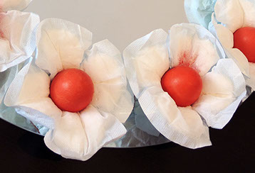 In southern part of China, there is a custom to eat red eggs to celebrate a baby born. I combined the red eggs with sanitary napkins to stress the relationship of menstruation and reproductive ability of women. Arranging these 2 materials into blossoming flowers is to show my positive attitude towards the naturalness of these bodily functions.